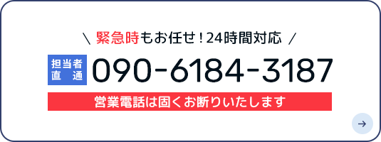 当方では、24時間対応です。緊急時のトラブルもご遠慮なく、ご連絡ください。